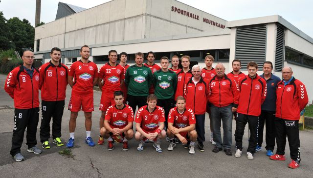 | Hintere Reihe von links nach rechts: | Sascha Dahlmann (Physiotherapeut), Christian Rother (erw. Kader), Jacek Krajnik, Alexander Zapf, Dennis Kirschsieper, Carsten Mundhenk, Fabian Zarnekow, Nils Thorben Schmidt, Joscha Saalmann, Nils Jungjohann (erw. Kader), Dieter Dietze (Co- und TW-Trainer), Philipp Hinkelmann, Karl-Hermann Stracke (Zeitnehmer), Lukas Steinhoff, Markus Pütz; Nebojša „Mike“ Novakovic (Trainer), Jörg Stursberg (Betreuer/Zeitnehmer) | ||