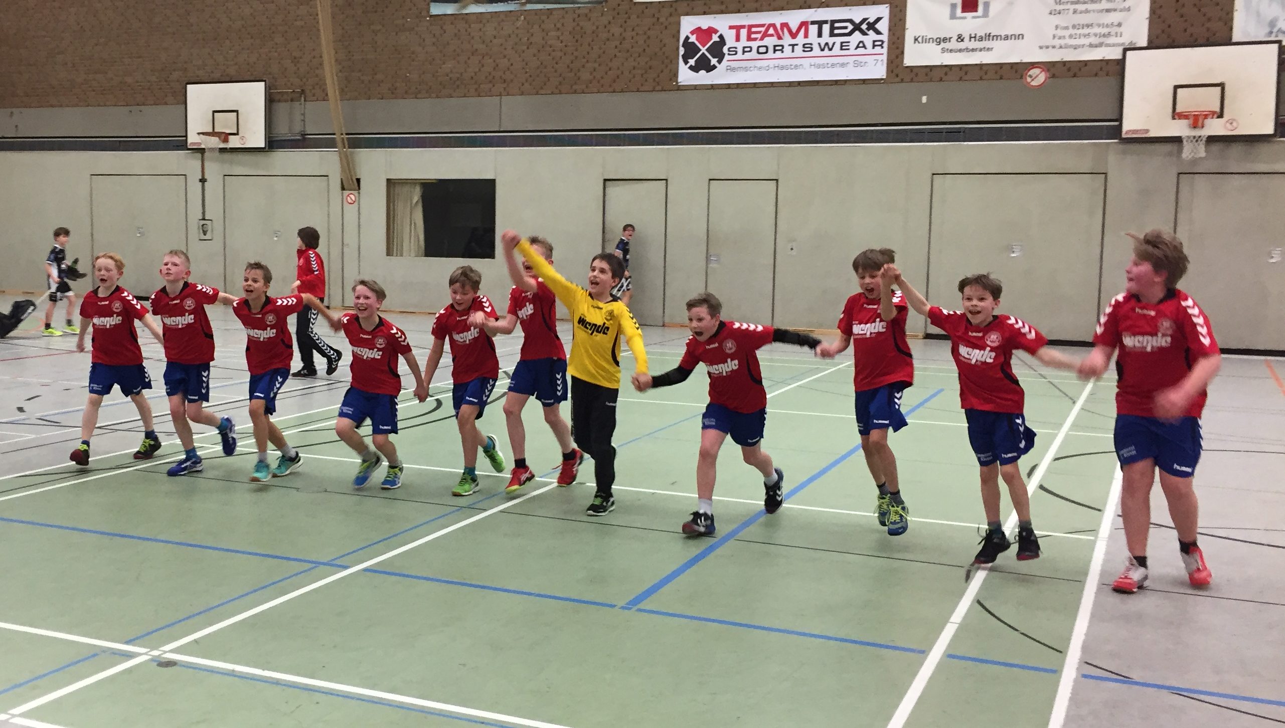 In der zweiten Hälfte ließen die Jungs dann nichts mehr anbrennen. Im Gegenteil, sie spielten weiter auf und bauten die Führung auf zwischenzeitliche 13 Tore aus. Vor dem Kampf- und Teamgeist der Jungs kann man nur den Hut ziehen, eine von Anfang bis Ende kuraschierte Leistung. Dementsprechend war auch die Stimmung in der Halle, es hat einfach Spaß gemacht zu zusehen. Letzten Endes konnten der junge Nachwuchs die Partie mit 23:8  beenden und zusammen mit der E1 die 2 Punkte verdient feiern.
