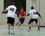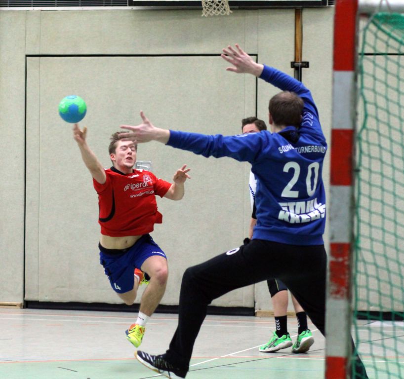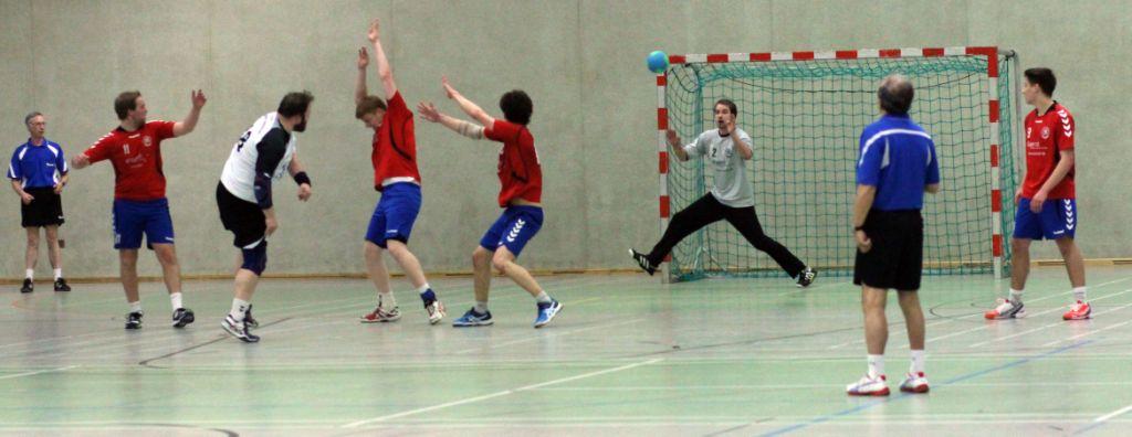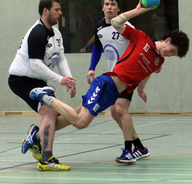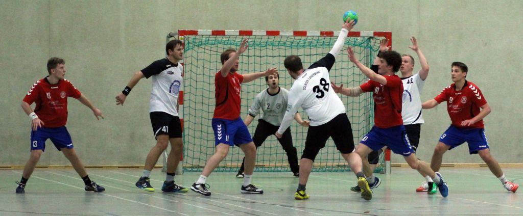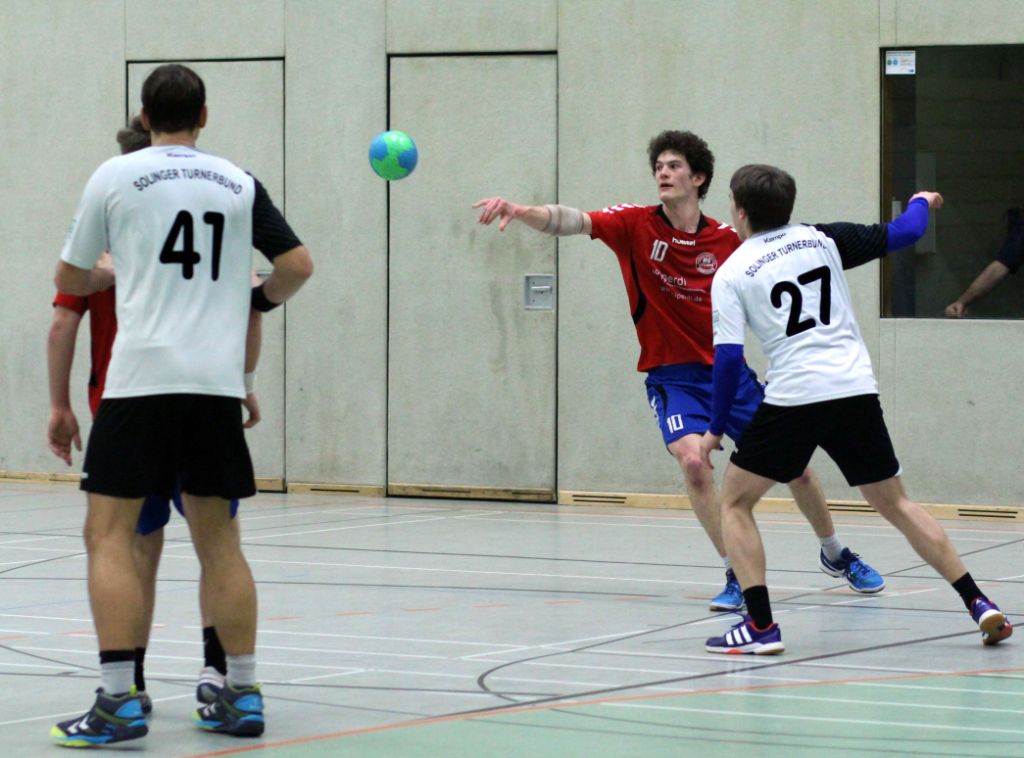 Die Voraussetzungen waren nicht gerade vielversprechend. Der kleine Kader gab nur zwei Auswechselspieler her. Zwei Spieler davon waren krank und Georg musste den in der ersten Halbzeit verhinderten, etatmäßigen Trainer ersetzen. Davon wollte wir uns aber nicht beeinflussen lassen. Und wie schon in letzten Spielen waren die ersten Minuten super (4:1). Doch aus irgendeinem Grund schaffen wir es im Moment nicht unsere Leistung kontinuierlich auf einem Niveau zu halten. In ersten Phase profitieren wir vor allem von Nils. Im Angriff warf er ein Tor nach dem anderen. Wie schon erwähnt gelang dann aber nicht mehr viel. Insbesondere im Angriff kamen wir kaum noch zum Torerfolg und machten einige tenchnische Fehler. Dadurch luden wir den Gast zu einigen TGs ein (5:4). Auch wenn wir uns dann wieder auf drei Tore absetzen konnten, war das Spiel jetzt ausgeglichen. Unsere Unsicherheit, vor allem im Angriff, sorgten dafür, dass die Solinger einen 14:11 Rückstand, in eine 15:16 Führung verwandeln konnten. In der Schlusssekunde gelang uns dann noch der Ausgleich (16:16).