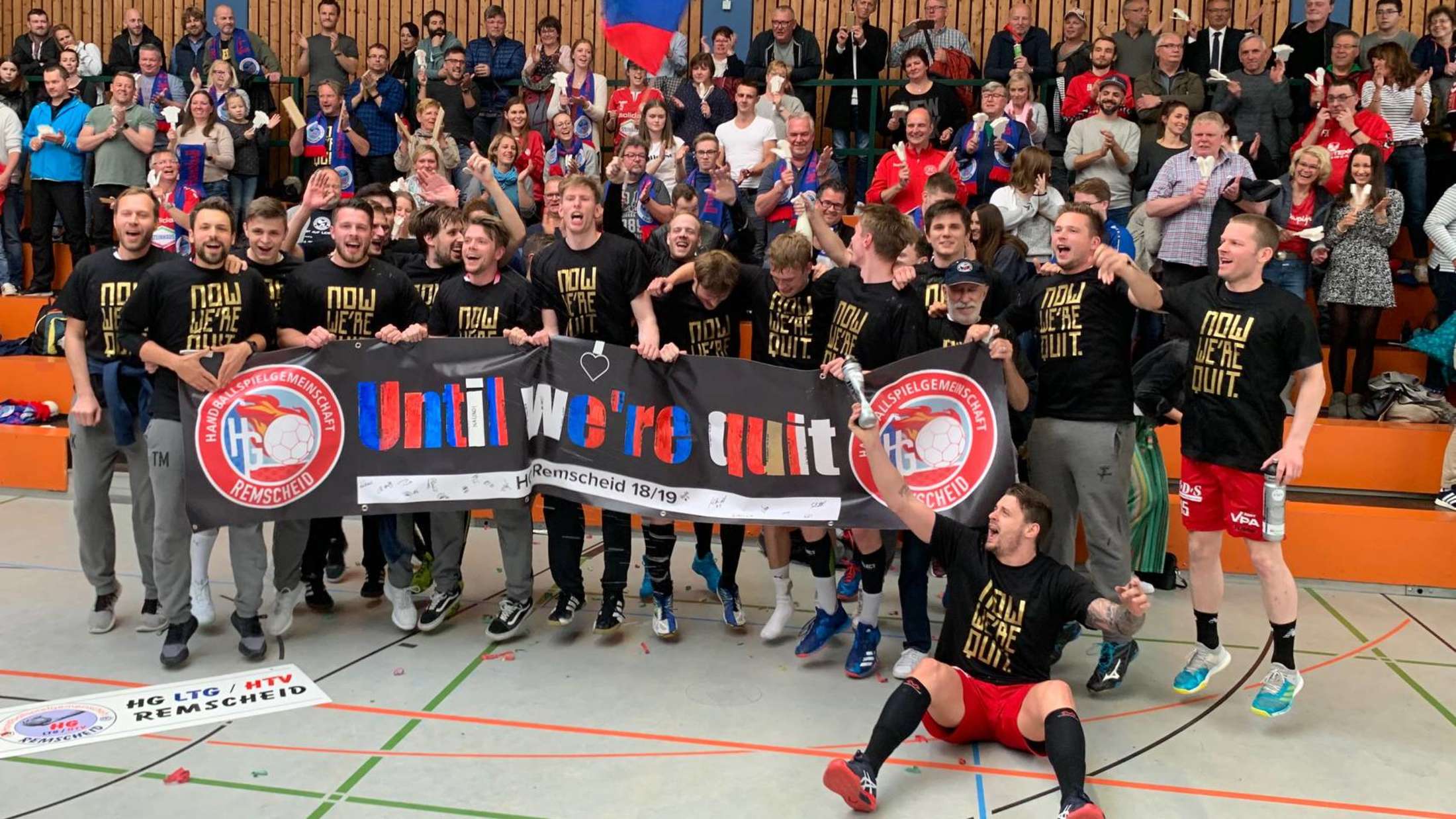 In der zweiten Hälfte ging der HGR manches leichter von der Hand. Sicher auch deshalb, weil die Unterstützung der Fans grandios war. Von der ersten bis zur letzten Minute standen sie wie ein Mann hinter ihrem Team, verziehen Fehler und munterten auf. So kam es zu den Jubelarien, die sich alle gewünscht hatten. Mit Tänzen, mit Aufstiegs-Shirts, mit einem speziellen Plakat („Until we´re quit“) und ganz vielen Emotionen. „Wir brauchen uns auch in der Regionalliga nicht zu verstecken“, glaubte Routinier Pascal Schiewe, der eine ganz starke zweite Hälfte spielte. Zunächst aber freuen sich alle auf die Abschlusstour über Pfingsten, deren Inhalt noch geheim ist. Der verletzte Kreisläufer Christian Rother verriet nur: „Quietsche-Ente und Kuscheltier spielen eine Rolle.“